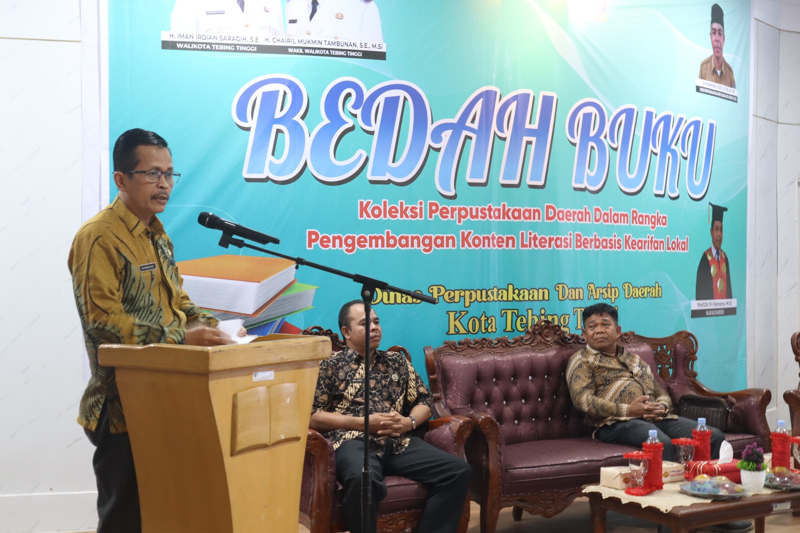 Pelaksana Harian (Plh.) Sekretaris Daerah Kota (Sekdako) Tebing Tinggi, H. Bambang Sudaryono, membuka acara bedah buku koleksi Perpustakaan Daerah, Kamis (10/7/2025) di Lantai 1 Dinas Perpustakaan dan Arsip Daerah, Jalan Dr. Sutomo No. 40, Kota Tebing Tinggi.