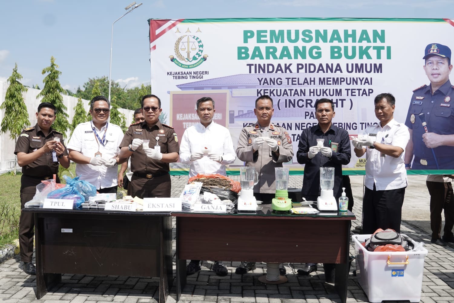 "Barang bukti narkotika dihancurkan dengan cara digiling sampai halus menggunakan detergen sehingga tidak dapat dipergunakan lagi. Sedangkan barang bukti lainnya dihancurkan dengan cara dibakar sampai menjadi abu dan tidak dapat dipergunakan lagi," ujar Kajari.