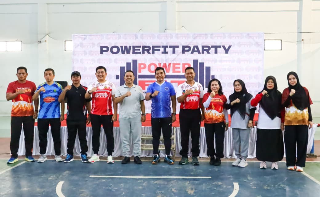 Wakil Wali Kota Tebing Tinggi H. Chairil Mukmin Tambunan bersama Wakil Kepala Kepolisian Daerah (Waka Polda) Sumatera Utara (Sumut) membuka secara resmi acara Power Fit Party yang digelar oleh Power Fit Indonesia di GOR Asber, Kota Tebing Tinggi, Minggu (19/10/2025).