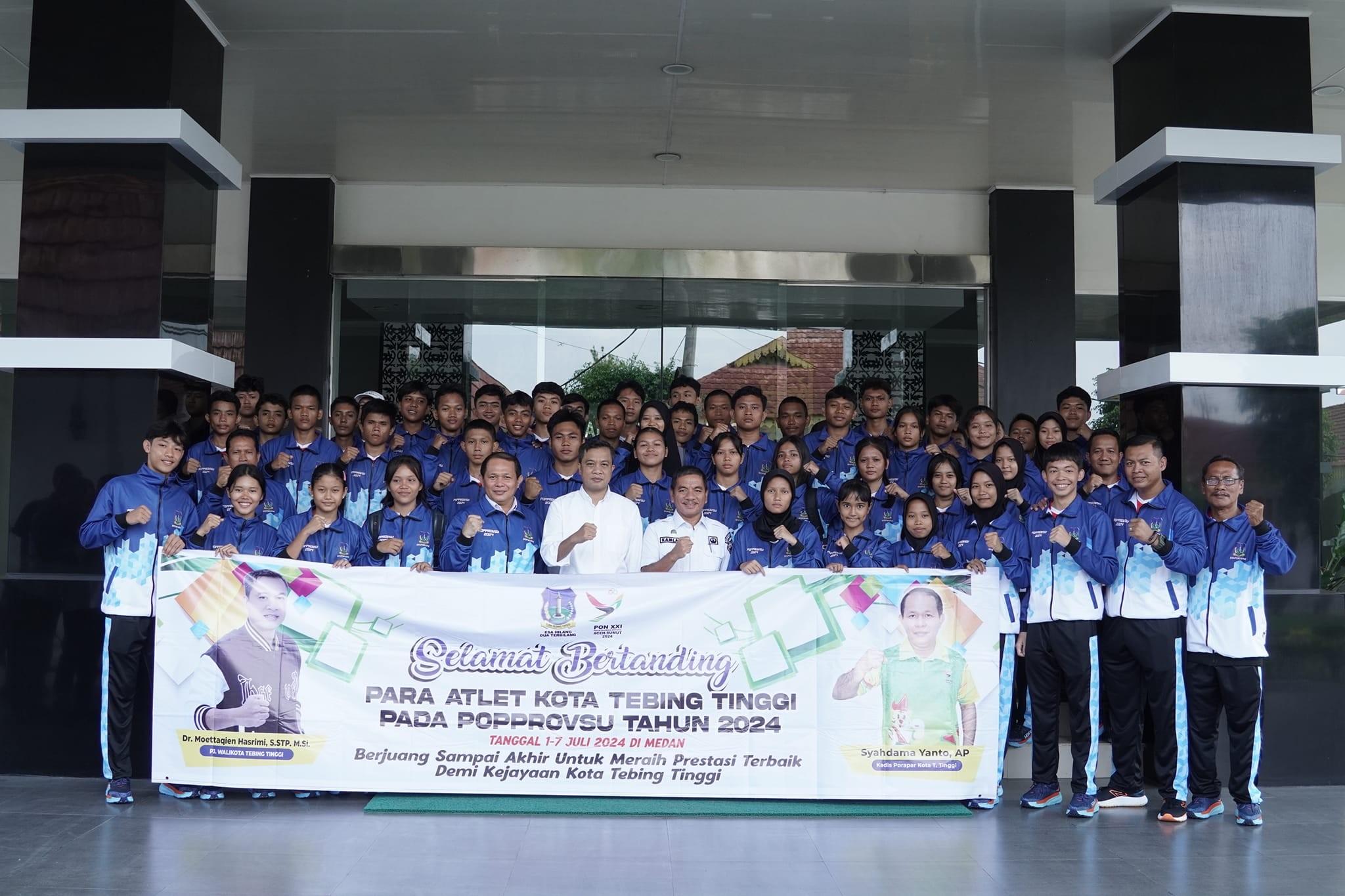 Melepas Kontingen Kota Tebing Tinggi yang akan bertanding dalam Popprovsu (Pekan Olahraga Pelajar Provinsi Sumatera Utara), Rabu (26/06/2024), di Ruang Mawar lantai III, Gedung Balai Kota Jln. Dr. Sutomo No. 14, Penjabat (Pj.) Wali Kota Tebing Tinggi Dr. Moettaqien Hasrimi, S.STP., M.Si. berpesan kepada para atlit untuk menjunjung tinggi sportivitas dan menjaga nama baik Kota Tebing Tinggi.