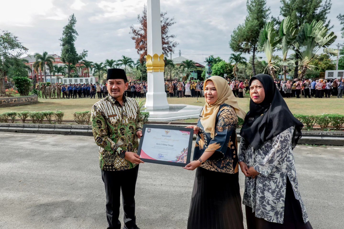 Seremonial penyerahan ketiga penghargaan tersebut dilaksanakan dalam apel gabungan ASN (Aparatur Sipil Negara) di lingkungan Pemerintah Kota Tebing Tinggi, Jumat (20-02-2026), bertempat di halaman Balai Kota, Jln. Dr. Sutomo No. 14.