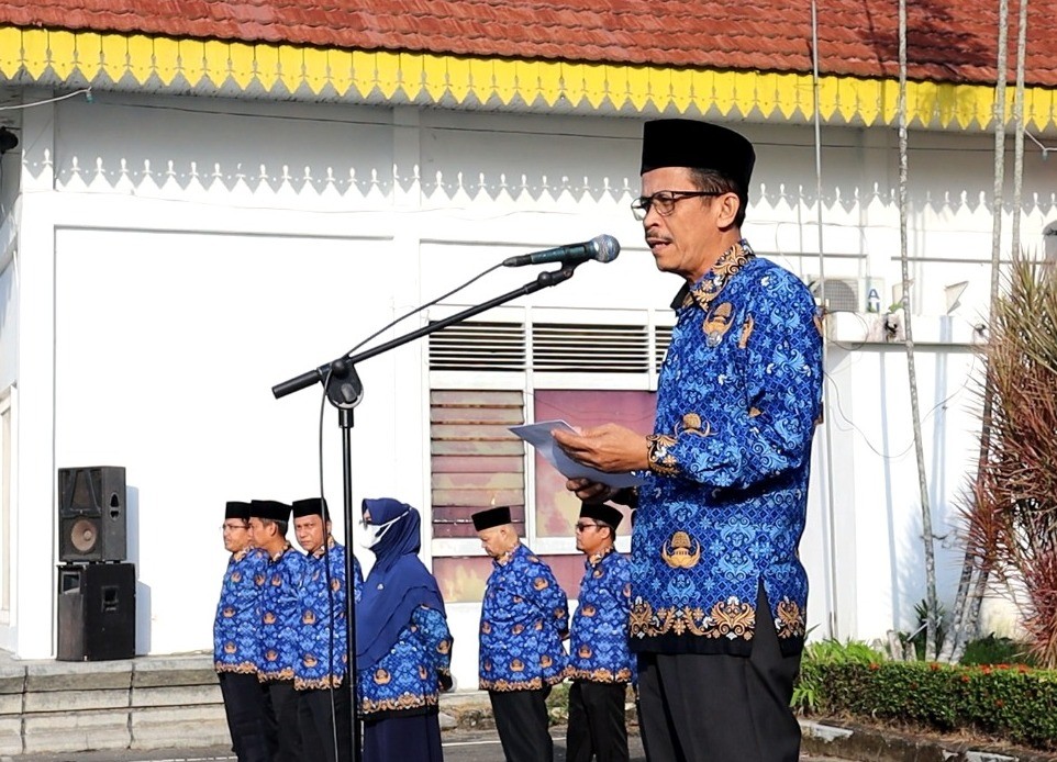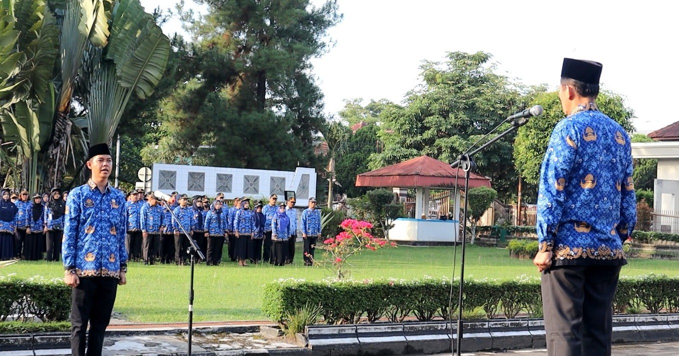 Asisten Pemerintahan dan Kesejahteraan Rakyat (Aspem dan Kesra), Drs. Bambang Sudaryono yang dalam kesempatan ini mewakili Pj. Wali Kota Tebing Tinggi bertindak sebagai Inspektur Upacara.
