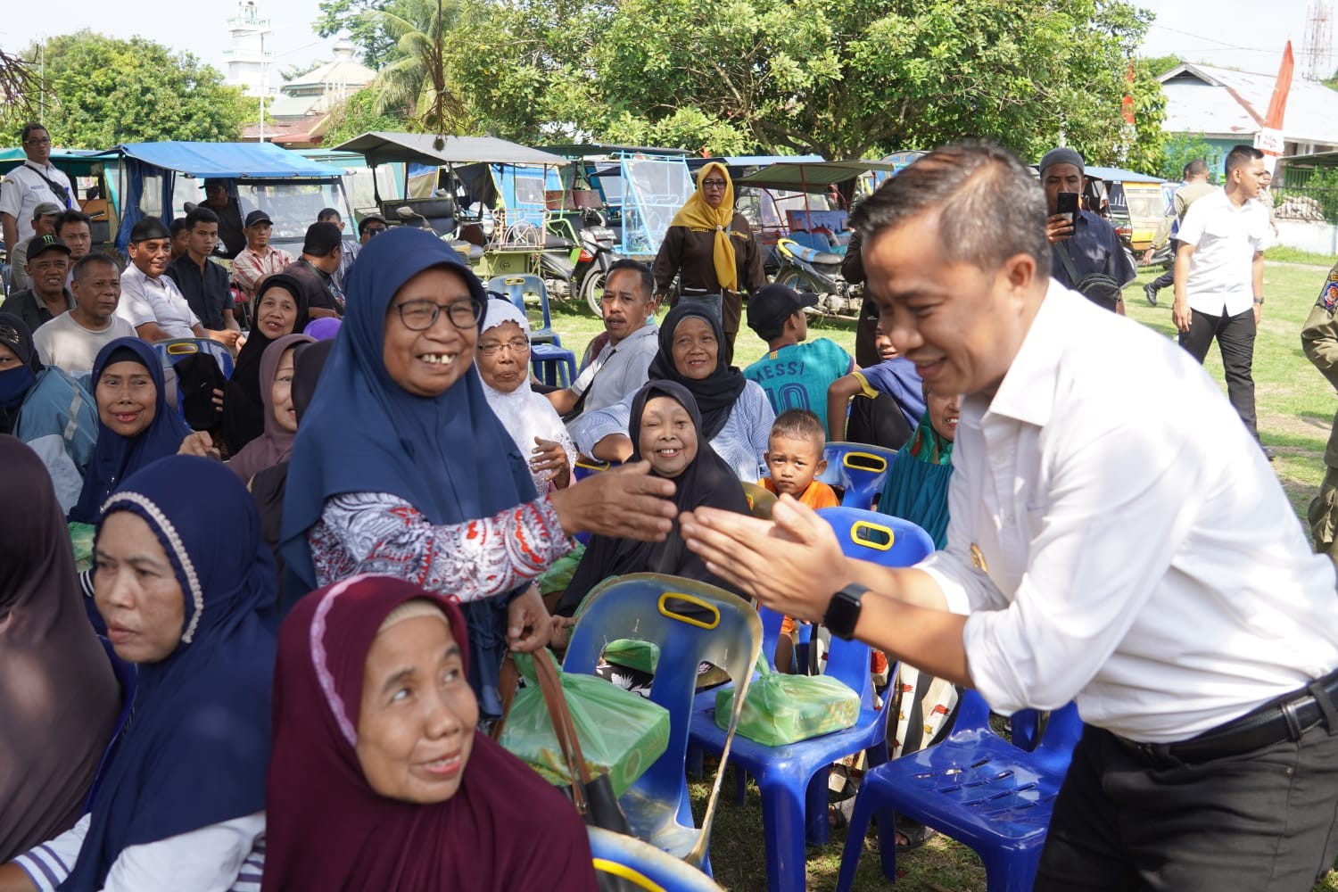 Penjabat (Pj) Wali Kota Tebing Tinggi, Dr. Moettaqien Hasrimi, S.STP. M.Si bersama istri, Ny. Dara Caprina Moettaqien, bersilaturrahmi dengan warga, sekaligus menghadiri kegiatan syukuran yang dilaksanakan di rumah Pak H. Ardo, salah satu tokoh masyarakat, Rabu (3/7/2024) di Jalan Deblod Sundoro, Gang Kelapa Lingkungan I, Kelurahan Bagelen, Kecamatan Padang Hilir Tebing Tinggi, Rabu (3/7/2024).