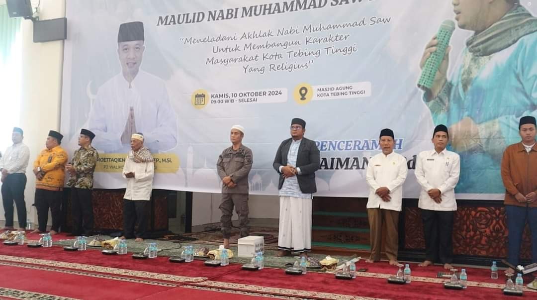 Dalam rangka memperingati Maulid Nabi Muhammad SAW 1446 H, Pemerintah Kota Tebing Tinggi menggelar Tabligh Akbar di Masjid Agung Kota Tebing Tinggi, Kamis (10/10/2024). Kegiatan yang dihadiri oleh ratusan jamaah ini bertujuan untuk mengajak masyarakat meneladani akhlak mulia Rasulullah SAW dalam kehidupan sehari-hari.