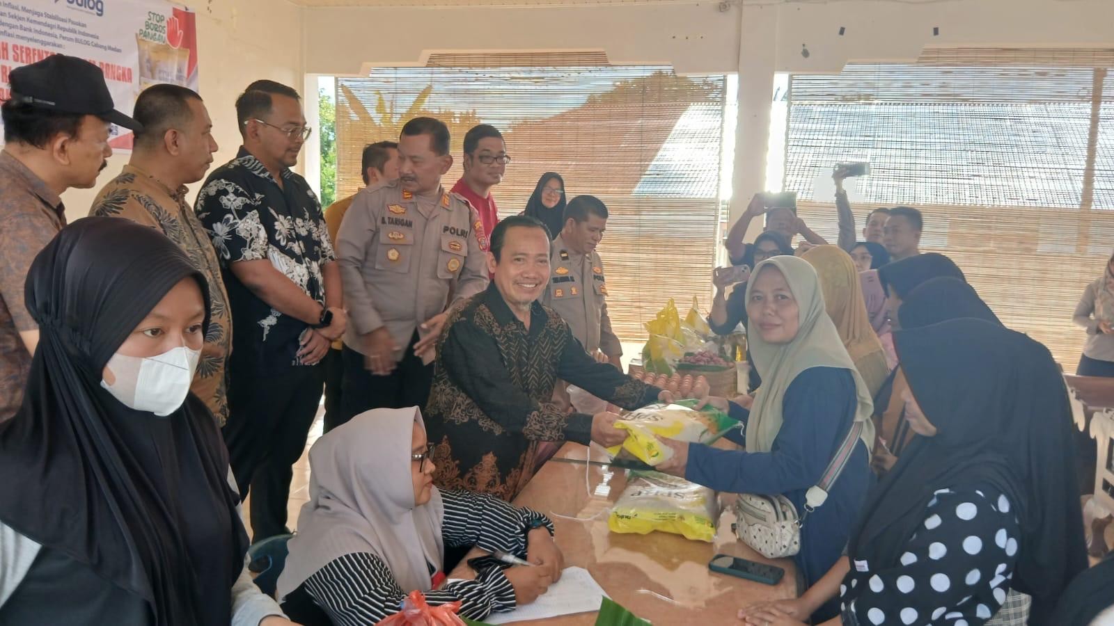 Penjabat (Pj.) Sekretaris Daerah (Sekda) Kota Tebing Tinggi, Muhammad Syah Irwan, meninjau pelaksanaan Gerakan Pangan Murah (GPM) yang digelar serentak di 5 kecamatan se-Kota Tebing Tinggi, Sabtu (30/8/2025).