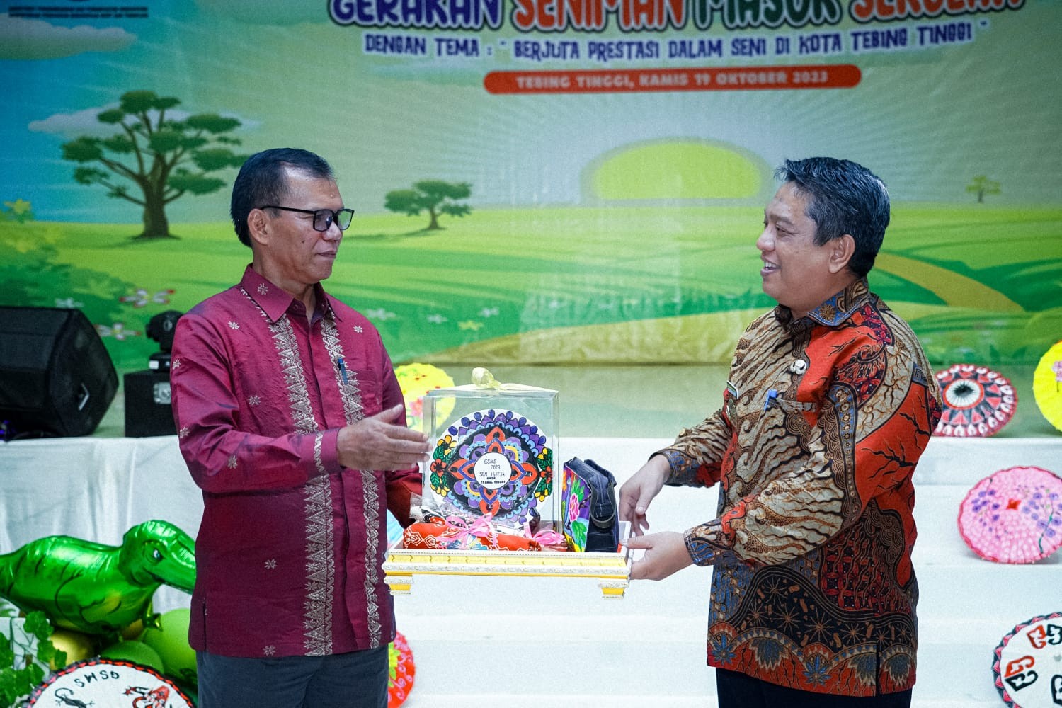 Penjabat (Pj.) Wali Kota Tebing Tinggi Drs. Syarmadani, M.Si. mengungkapkan apresiasi atas terlaksananya kegiatan pagelaran seni Gerakan Seniman Masuk Sekolah (GSMS) yang digelar Pemerintah Kota (Pemko) Tebing Tinggi melalui Dinas Pendidikan dan Kebudayaan bekerjasama dengan Kemendikbudristek RI, Kamis (19/10/2023) bertempat di Gedung Balai Pertemuan Kartini Convention Center, Jl. Gunung Leuser BP 7.