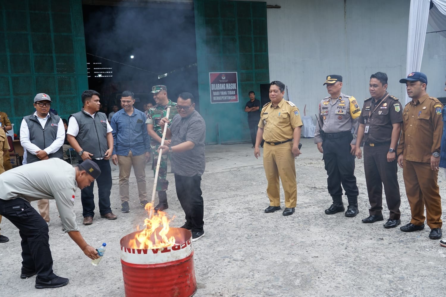Acara dirangkai dengan pemusnahan kelebihan dan rusaknya surat suara dengan cara dibakar, yang sebelumnya telah dipastikan kesesuaian jumlah oleh 2 orang anggota Bawaslu, Lambo Leonard Simbolon dan Elpian Choki Nasution. Dilanjutkan berfoto bersama dan pelepasan distribusi logistik surat suara ke 5 Kecamatan di Kota Tebing Tinggi dengan pengawalan dari pihak Polres.