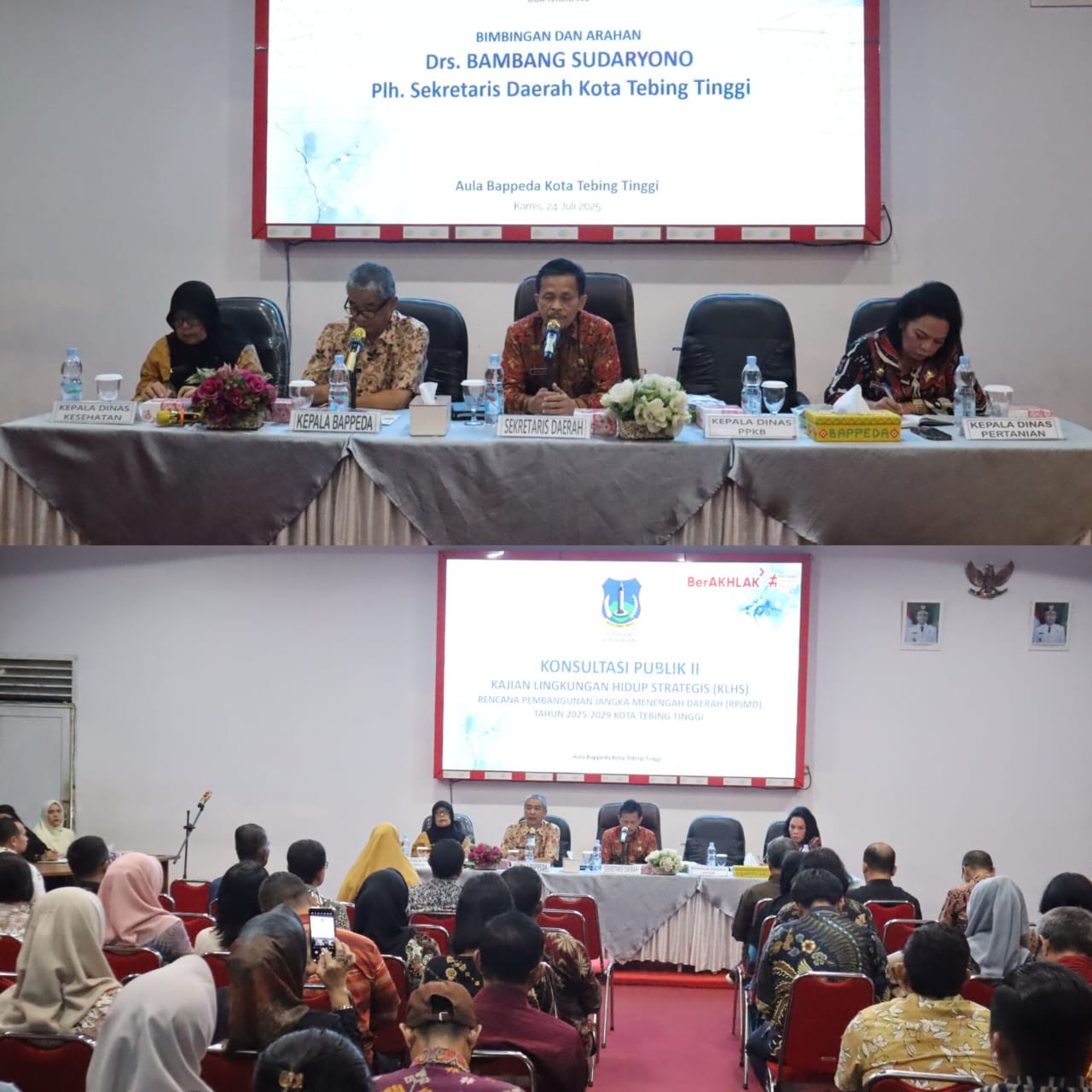 Pelaksana Harian (Plh.) Sekretaris Daerah Kota (Sekdako) Tebing Tinggi, H. Bambang Sudaryono, membuka rapat koordinasi (rakor) pasca Musyawarah Perencanaan Pembangunan (Musrenbang) Rencana Kerja Pemerintah Daerah (RKPD) Tahun 2026 di Aula Kantor Bappeda, Jalan Delima, Kota Tebing Tinggi, Kamis (24/07/2025).