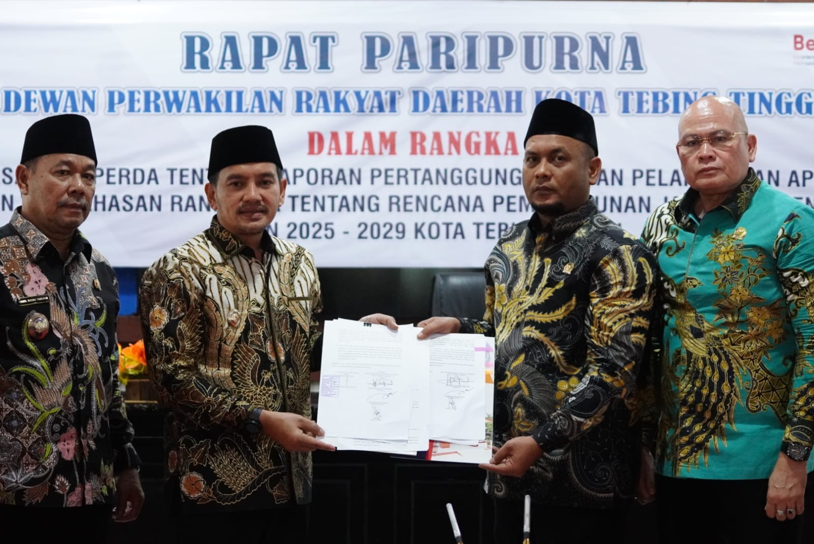 Keputusan ini diambil dalam Rapat Paripurna lanjutan yang dipimpin oleh Ketua DPRD Kota Tebing Tinggi, Sakti Khadaffi Nasution, didampingi oleh Wakil Ketua I H. Muhammad Ikhwan dan Wakil Ketua II Husein, dengan agenda penyampaian hasil rapat gabungan komisi-komisi dengan pihak eksekutif, serta pendapat akhir fraksi-fraksi, dan sambutan Wali Kota Tebing Tinggi, Jumat (11/7/2025) di Ruang Sidang Paripurna Gedung DPRD, Jln. Dr. Sutomo No. 14.