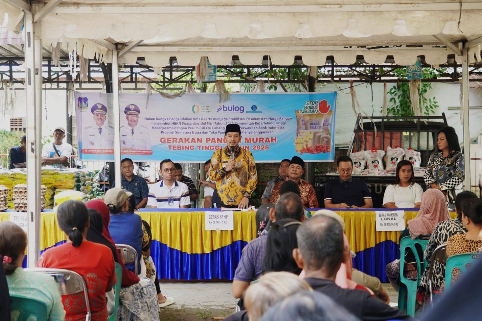Wali Kota Tebing Tinggi H. Iman Irdian Saragih bersama Wakil Wali Kota H. Chairil Mukmin Tambunan, meninjau langsung pelaksanaan GPM (Gerakan Pangan Murah) yang digelar Pemerintah Kota (Pemko) Tebing Tinggi, dalam rangka menjaga ketersediaan dan kestabilan harga bahan kebutuhan pokok pada bulan Ramadhan 1446 H (Hijriah) dan menyambut Idul Fitri, di Kantor Kecamatan Rambutan, Jl. Gunung Leuser, Kelurahan Tanjung Marulak, Kecamatan Rambutan, Jumat (7/3/2025).