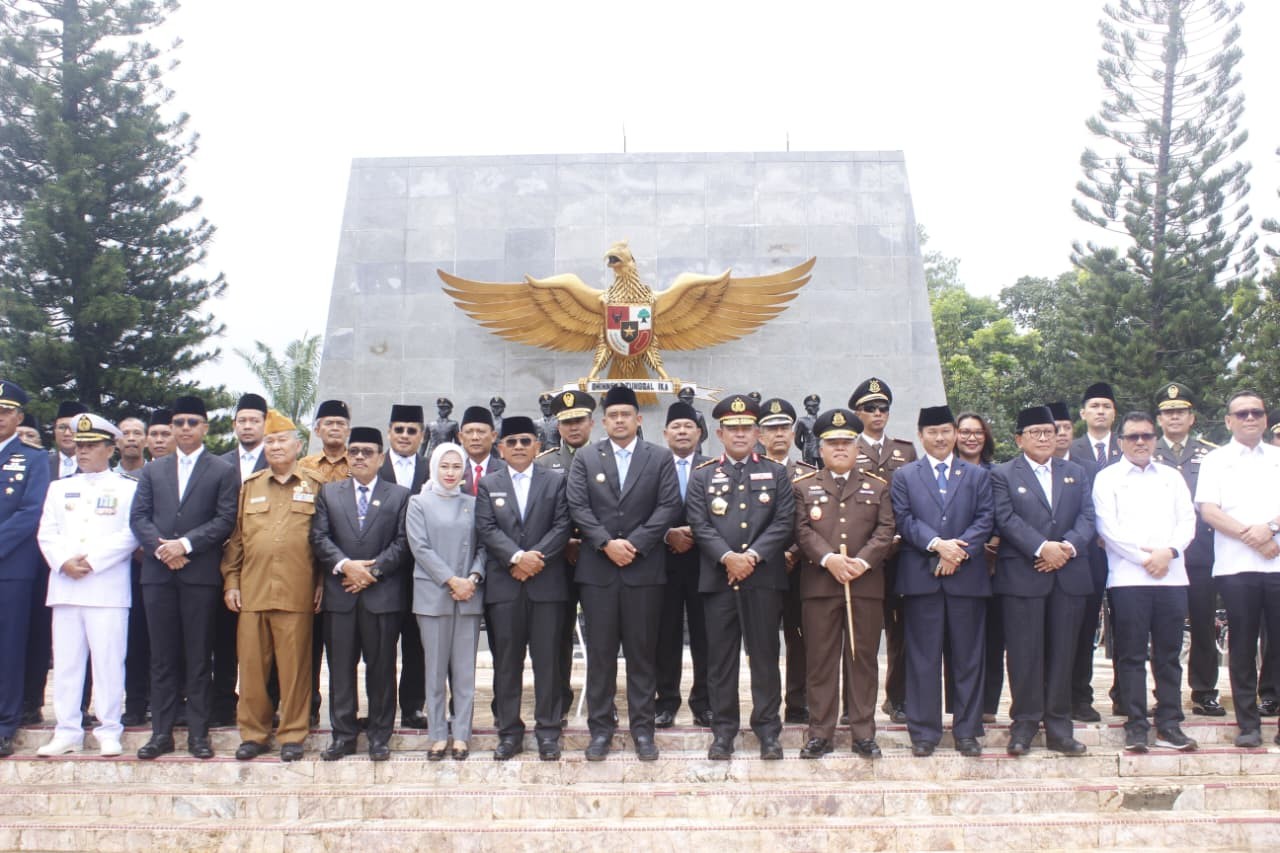 Wakil Wali Kota Tebing Tinggi, H. Chairil Mukmin Tambunan, didampingi Asisten Perekonomian dan Pembangunan Reza Agistha dan Kepala Bagian Pengadaan Barang dan Jasa Iqbal Halim Ramadhan Nasution, menghadiri Upacara Peringatan Hari Kesaktian Pancasila, 1 Oktober 2025, yang digelar di Monumen Bandar Betsy, Kabupaten Simalungun, Rabu (1/10/2025).