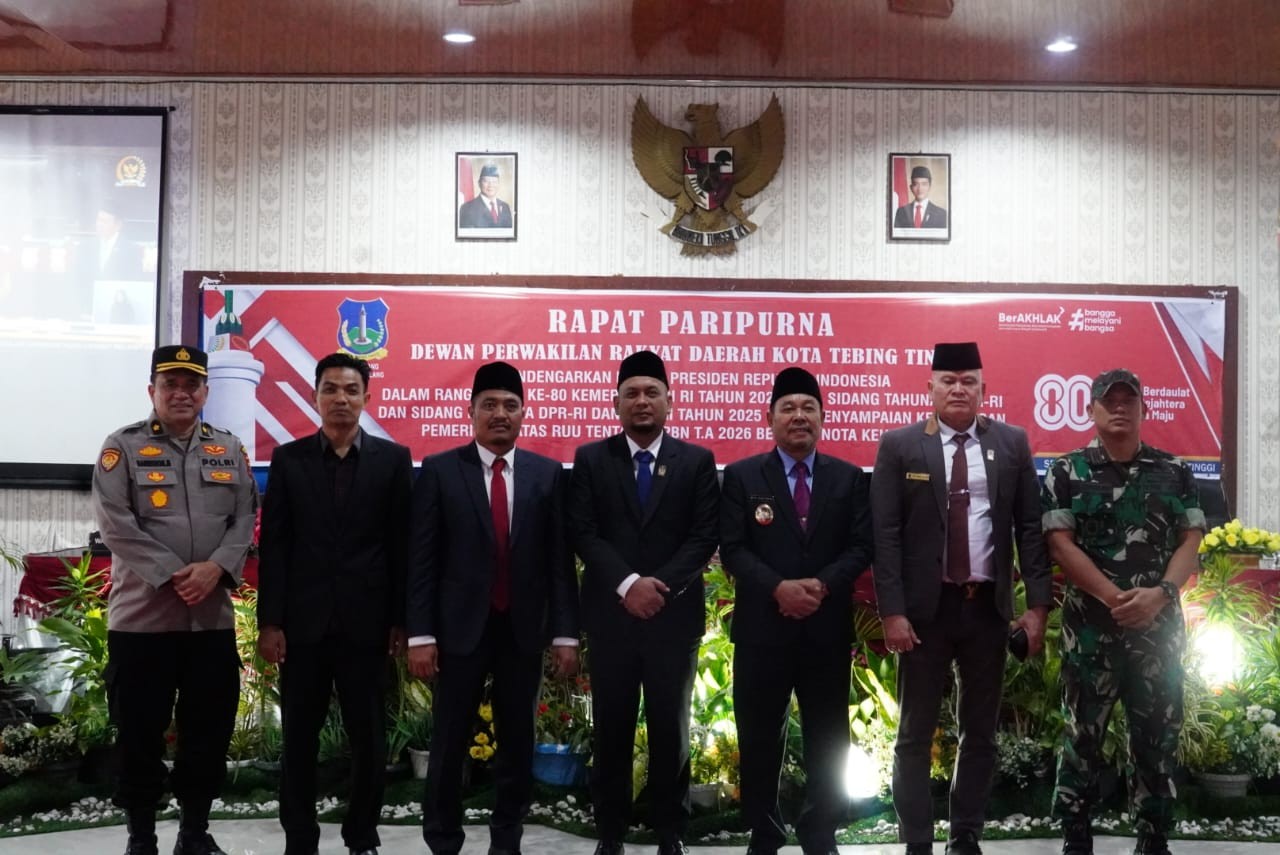 Wakil Wali Kota Tebing Tinggi, H. Chairil Mukmin Tambunan, kembali menghadiri rapat paripurna DPRD Kota Tebing Tinggi di ruang Sidang Paripurna, Gedung DPRD, Jl. Dr. Sutomo, Jumat sore (15/8/2025).