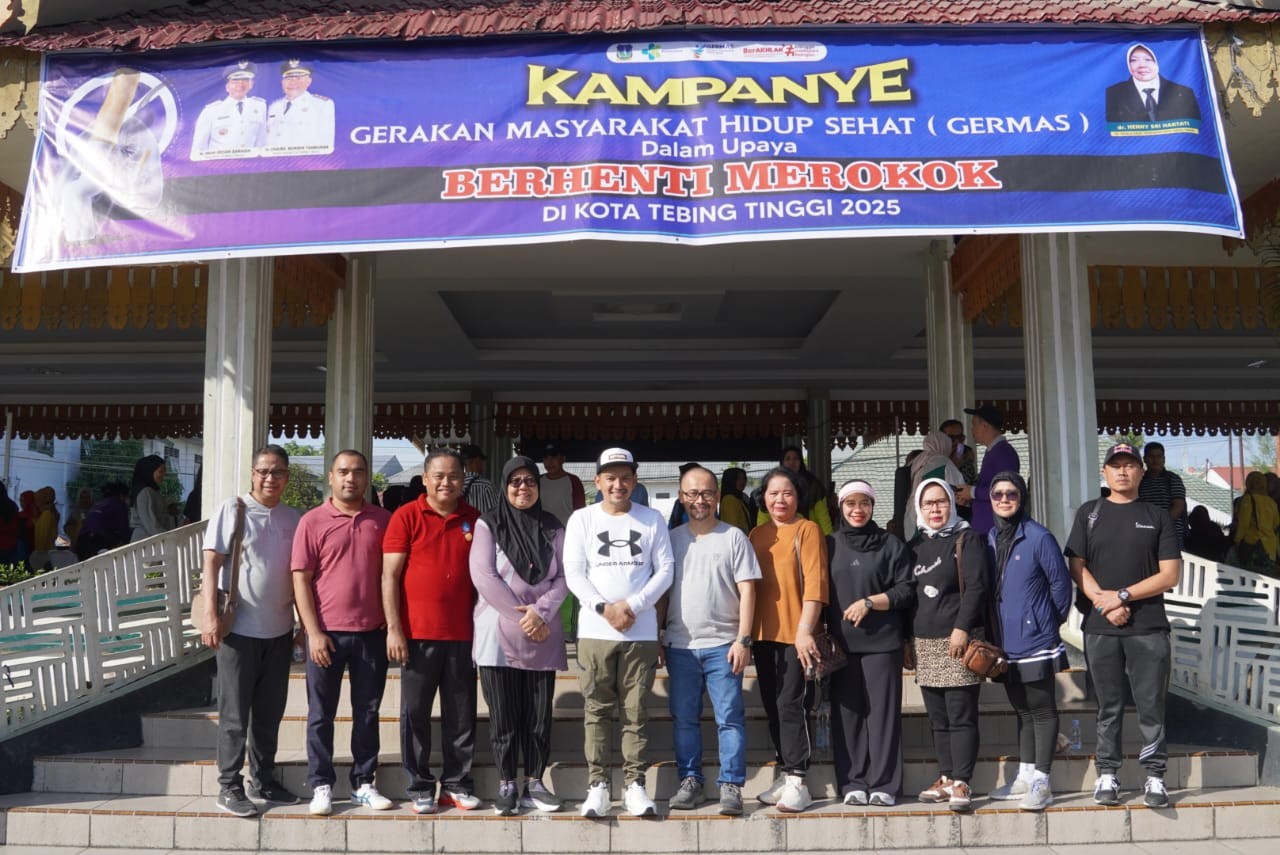 Wali Kota Tebing Tinggi, H. Iman Irdian Saragih, menghadiri kegiatan Senam Bersama dalam rangka Kampanye Gerakan Masyarakat Hidup Sehat (GERMAS) sebagai upaya mendukung program berhenti merokok di Kota Tebing Tinggi, Jumat (11/7/2025) di Lapangan Merdeka, Kota Tebing Tinggi.