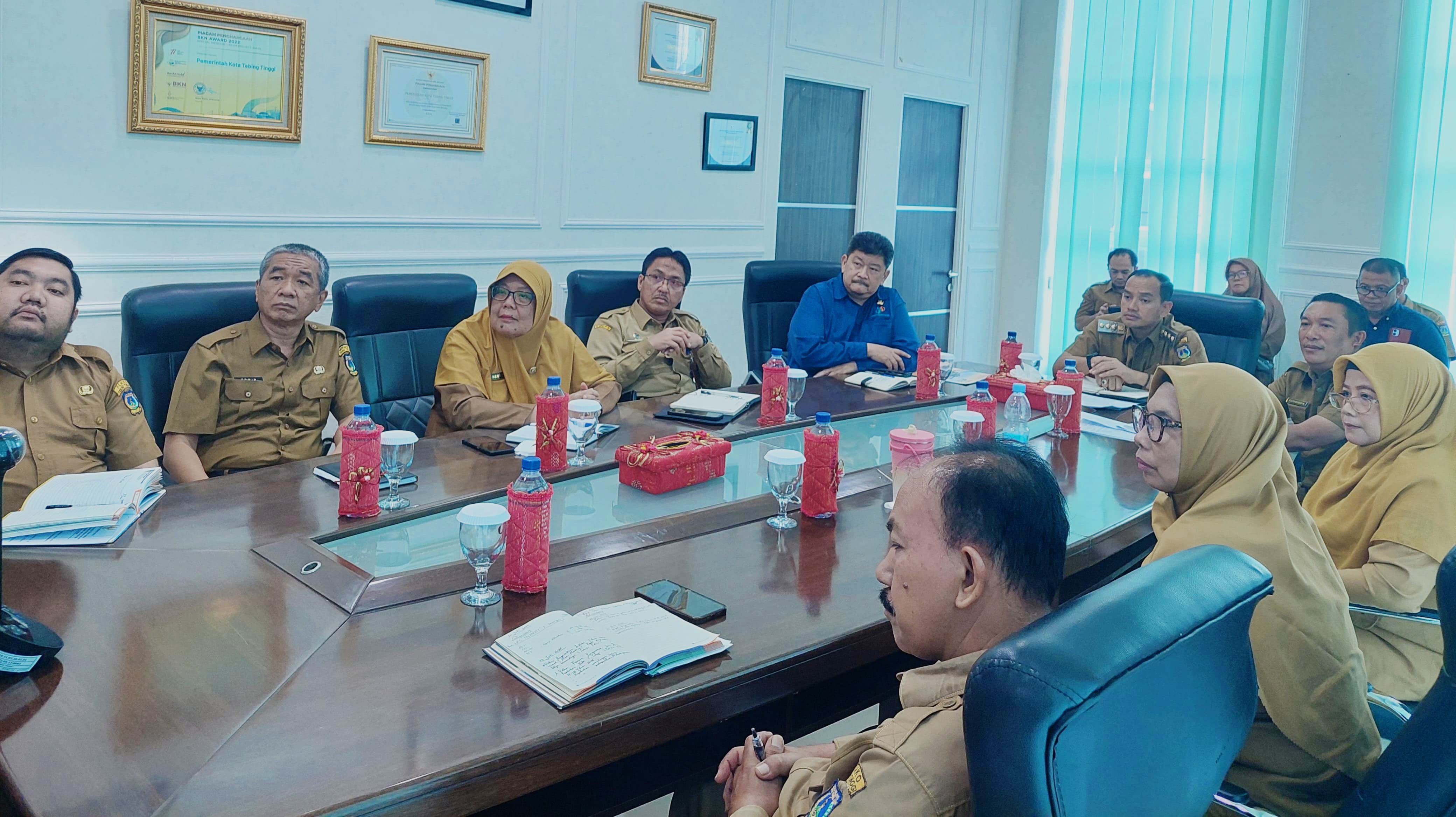 Wali Kota Tebing Tinggi H. Iman Irdian Saragih bersama stakeholder terkait mengikuti Rapat Koordinasi (Rakor) Pengendalian Inflasi Daerah secara virtual di ruang kerja Wali Kota, Lantai IV Gedung Balai Kota, Senin (30/6/2025).