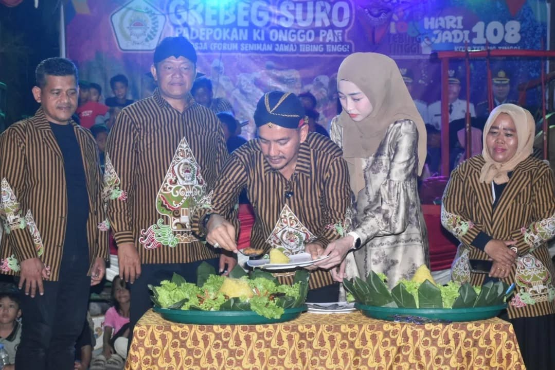 Wali Kota Tebing Tinggi, H. Iman Irdian Saragih, menghadiri Kirab Budaya Forum Seniman Jawa (FSJ) "Grebeg Suro Padepokan Ki Onggo Pati" yang digelar dalam rangkaian memperingati Hari Jadi Kota Tebing Tinggi ke-108 Tahun, Sabtu malam (28/6/2025) di Lapangan Merdeka, Jalan Dr. Sutomo, Kota Tebing Tinggi.