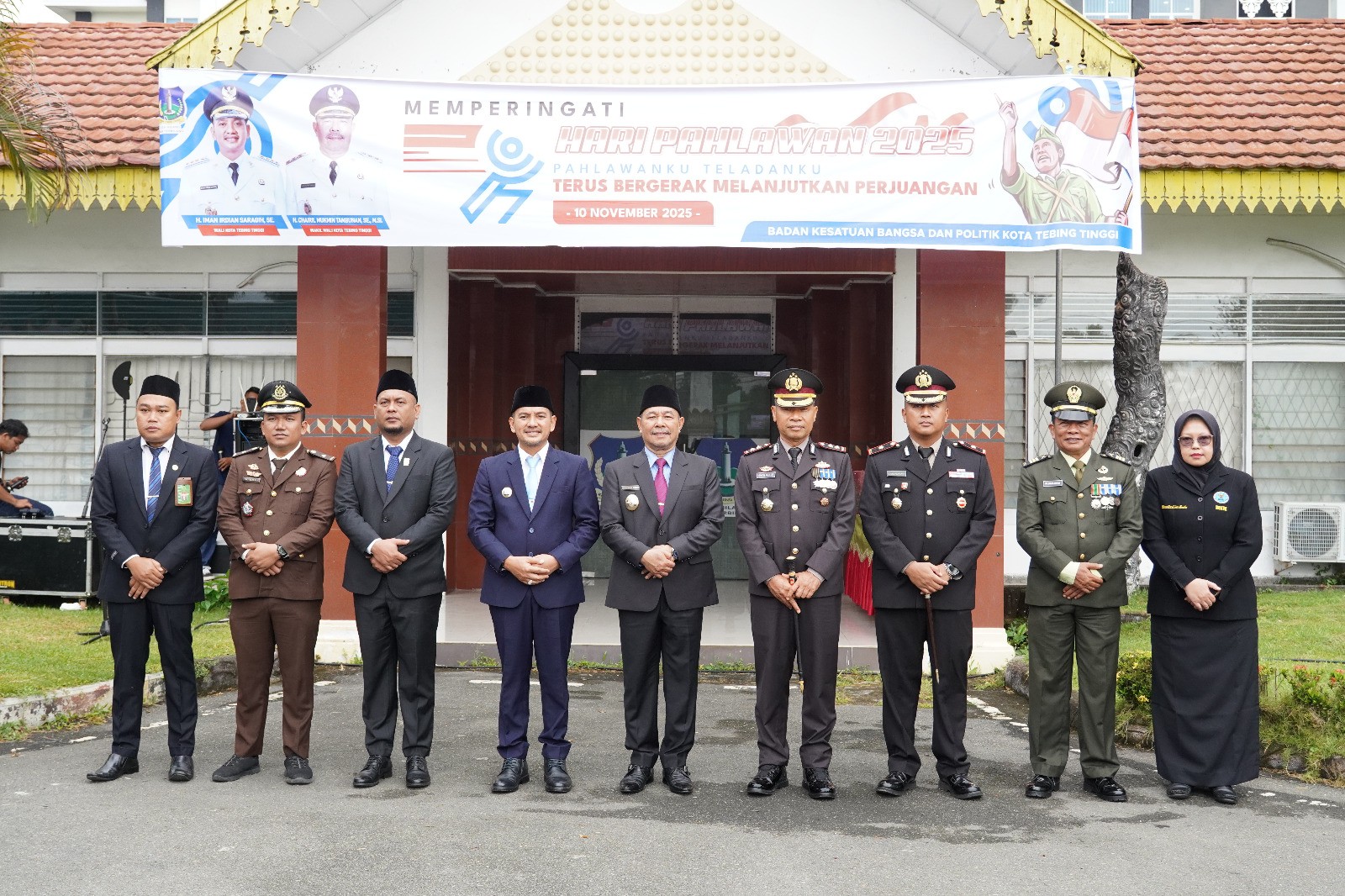 Wali Kota Tebing Tinggi H. Iman Irdian Saragih selaku Inspektur Upacara memimpin upacara peringatan hari Pahlawan 10 November, Senin (10/11/2025) di lapangan Balai Kota, Jln. Dr. Sutomo No. 14.