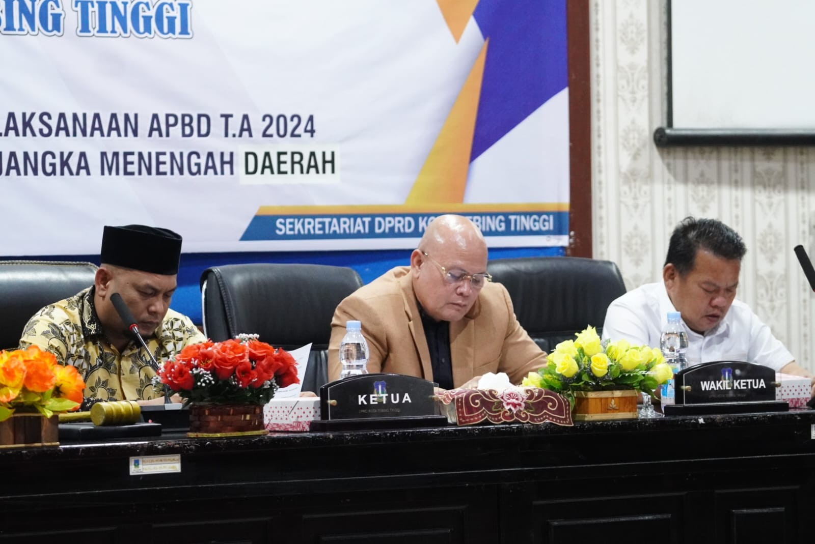 Rapat paripurna dipimpin oleh Ketua DPRD Kota Tebing Tinggi, Sakti Khadaffi Nasution, didampingi oleh Wakil Ketua I H. Muhammad Ikhwan dan Wakil Ketua II Husein, serta dihadiri oleh Wali Kota Tebing Tinggi H. Iman Irdian Saragih, Wakil Wali Kota H. Chairil Mukmin Tambunan, Plh. Sekdako H. Bambang Sudaryono, Asisten, Kepala OPD atau mewakili, Staf Ahli, Kabag, Camat dan Lurah atau mewakili, tokoh agama, tokoh masyarakat, LSM, tamu undangan, dan insan pers.