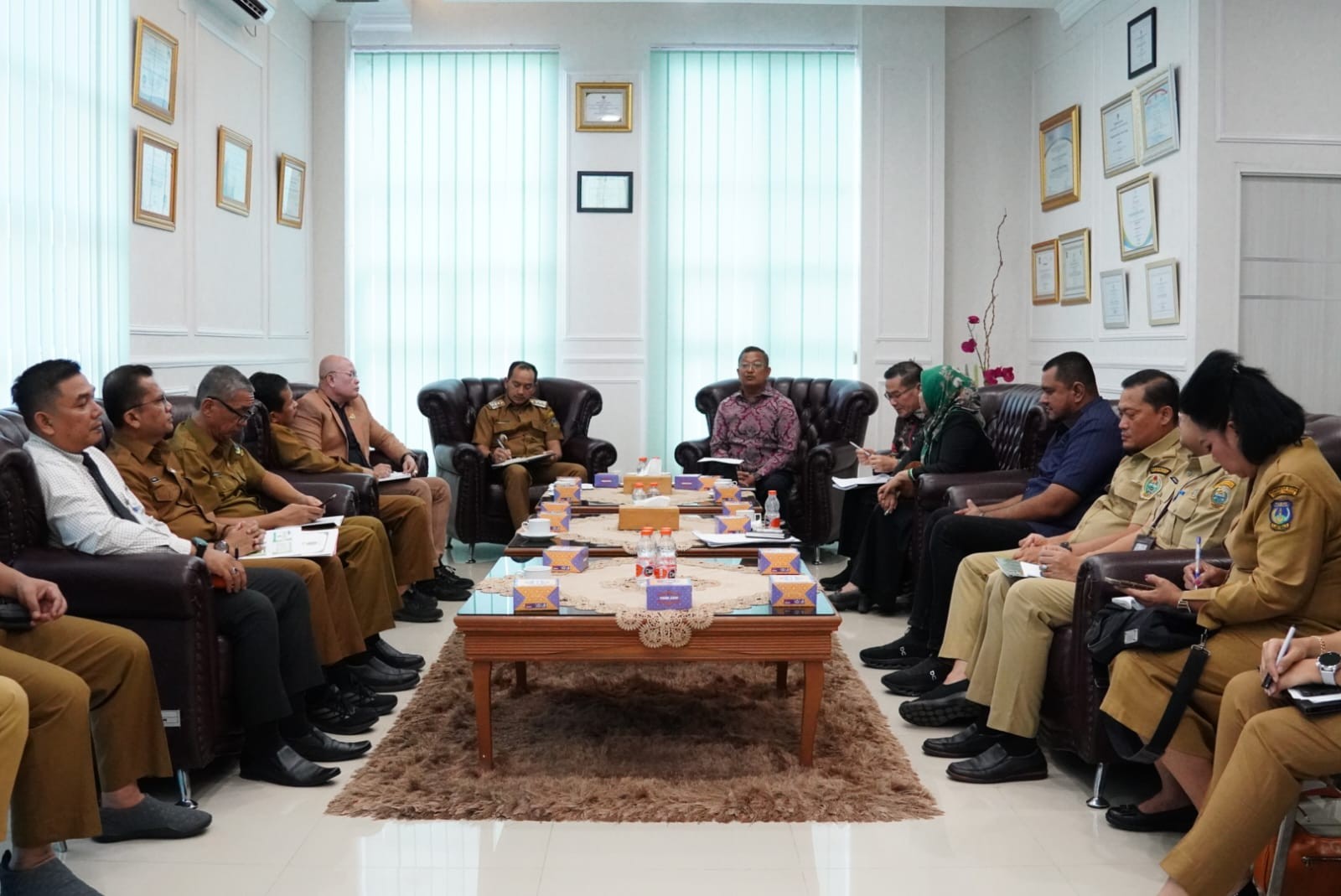 Wali Kota Tebing Tinggi, H. Iman Irdian Saragih, bersama Wakil Ketua II DPRD Kota Muhammad Ikhwan dan Plh. Sekretaris Daerah Kota H. Bambang Sudaryono, menerima kunjungan kerja (kunker) anggota DPRD Provinsi Sumatera Utara (Sumut) Daerah Pemilihan (Dapil) IV di ruang kerja Wali Kota, lantai IV, Gedung Balai Kota, Jalan Dr. Sutomo No. 14, Senin (7/7/2025). Dapil IV ini sendiri meliputi wilayah Kota Tebing Tinggi dan Kabupaten Serdang Bedagai.